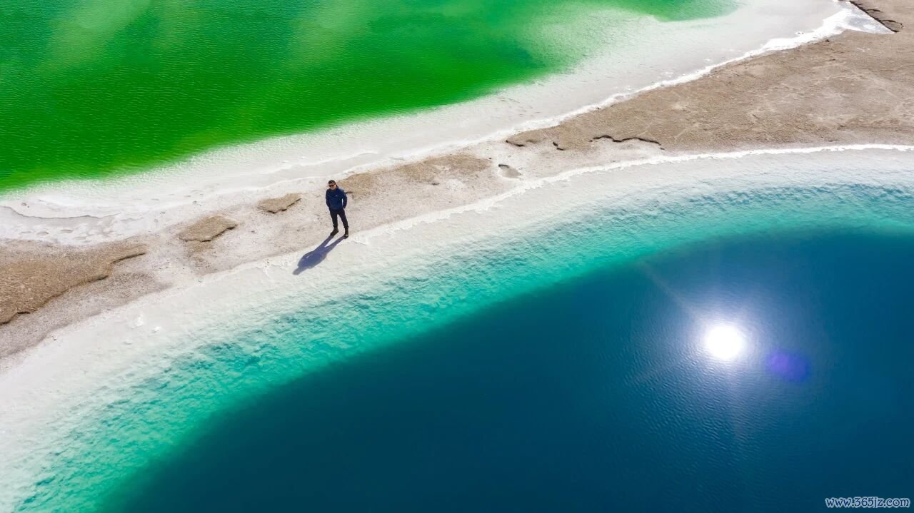 湖水中富含钾、镁、锂等矿物质,浓度不同,在阳光下呈现出薄荷绿、蒂芙尼蓝、琥珀黄等梦幻色彩。每一个盐池都像一颗镶嵌在大地上的宝石,晶莹剔透。
